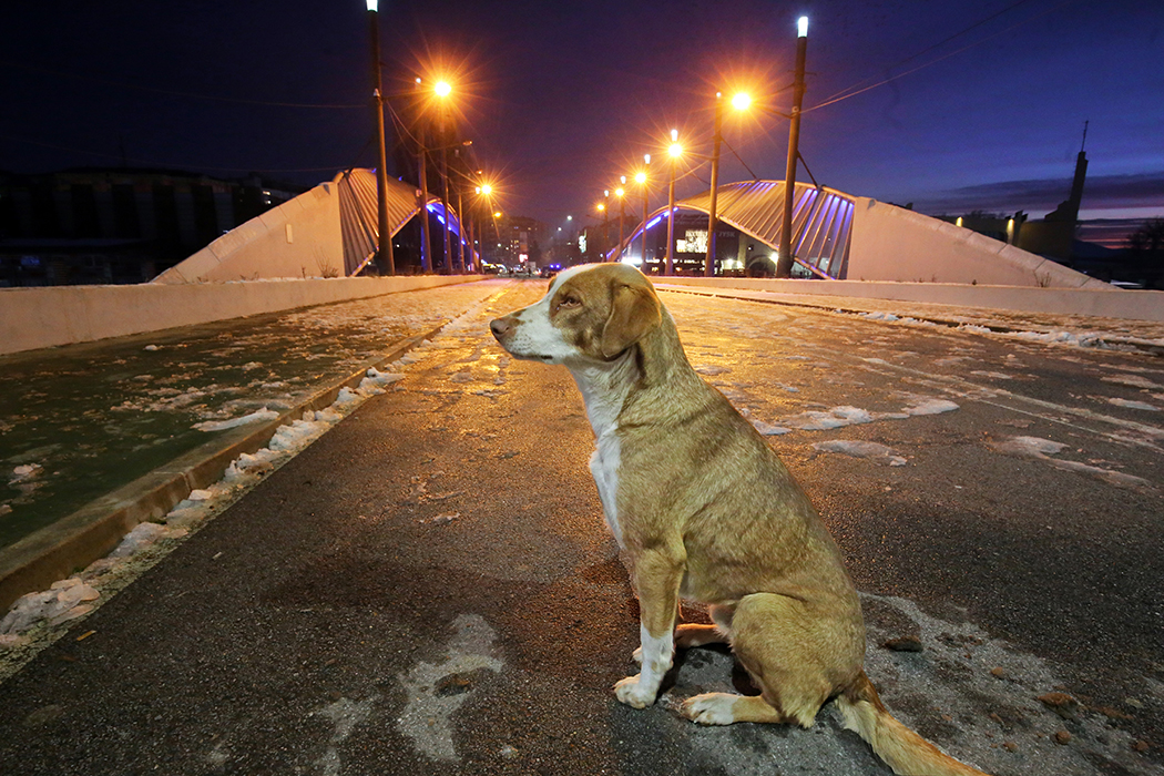 A Stray dog poses on the bridge