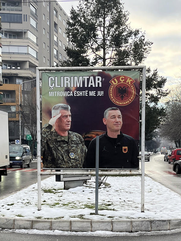 On the Kosovan side, facing the Serbian side is a billboard of the Military Leader with the caption “We will liberate Mitrovice”